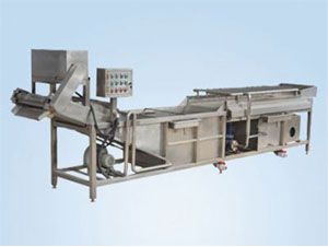 清洗机是以高压风机风力或水泵的压力使水产生强烈搅拌运动,使物料在水中翻滚,利用毛辊转动及高压喷淋相互结合,从而达到清洗的专用效果。结构特征与工作原理该机由机架、水箱、风机(水泵)、、循环冲洗水泵、传动部分等几部分组成,工作时由于水中风力(压力)的存在,果蔬在水中剧烈翻滚搅动,清洗水经过过滤后,由循环冲洗泵加压至进料口喷管回冲,喷管方向可调,物料被喷管喷出的高压水得以再次冲洗,并朝着出口方向漂移,出口处置至刮板提升机,刮板提升机的速度可调(调节刮板提升机速度到所需的生产能力),将冲来的果蔬送至下道工序(可根据用户要求在出口刮板提升机上加喷淋管,进一步进行喷洗)。也可根据用户不同的物料,加工不同的提升结构。 毛辊清洗机 本文被阅读 3479 次